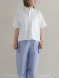 shokuonshitsu workshirt(オフホワイト) ドッグプリント半袖ワークシャツ