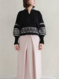 素敵なジャカードの編み模様が目を引く、可愛らしいニットセーターです。