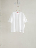 昔の肌着に押されていたスタンプのように、左裾に入ったプリントが可愛らしいポイントです。衿ぐりも当時のデザインを再現し、首が伸びにくい仕様です。