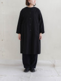 身幅はゆったりと楽な着心地。すっきりとしたノーカラーで柔らかな表情です。