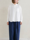ゴーシュらしい細部まで計算された、美しく快適なシルエット。カジュアルなボトムスと合わせてもきれいに着れる、台衿のない気楽シャツです。
