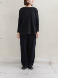 程よくゆとりのある品の良い佇まい。ボリュームは控えめで重たい印象がなく、ゆとりがありながらもスッキリと美しいラインでご着用いただけます。ウエストはゴムと紐の通ったイージー仕様で楽な穿き心地です。