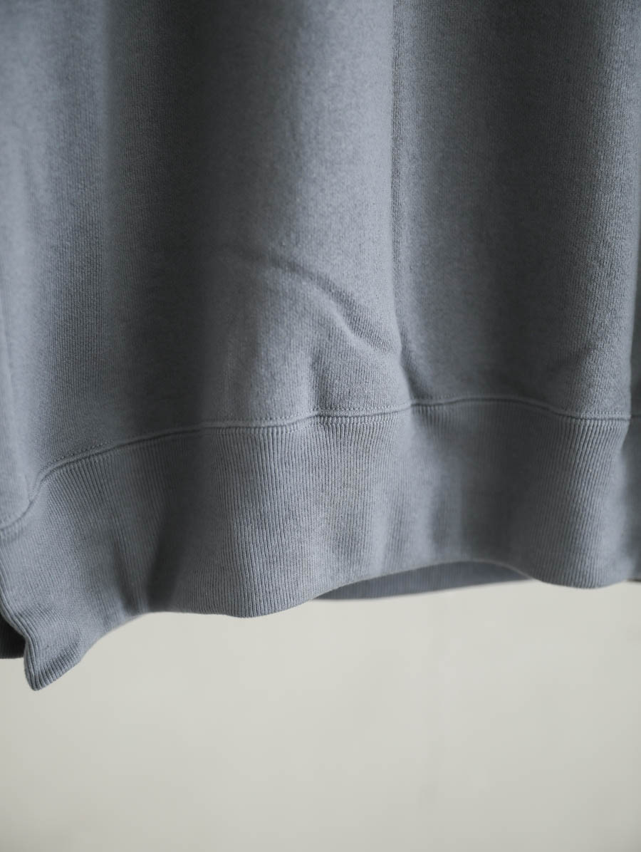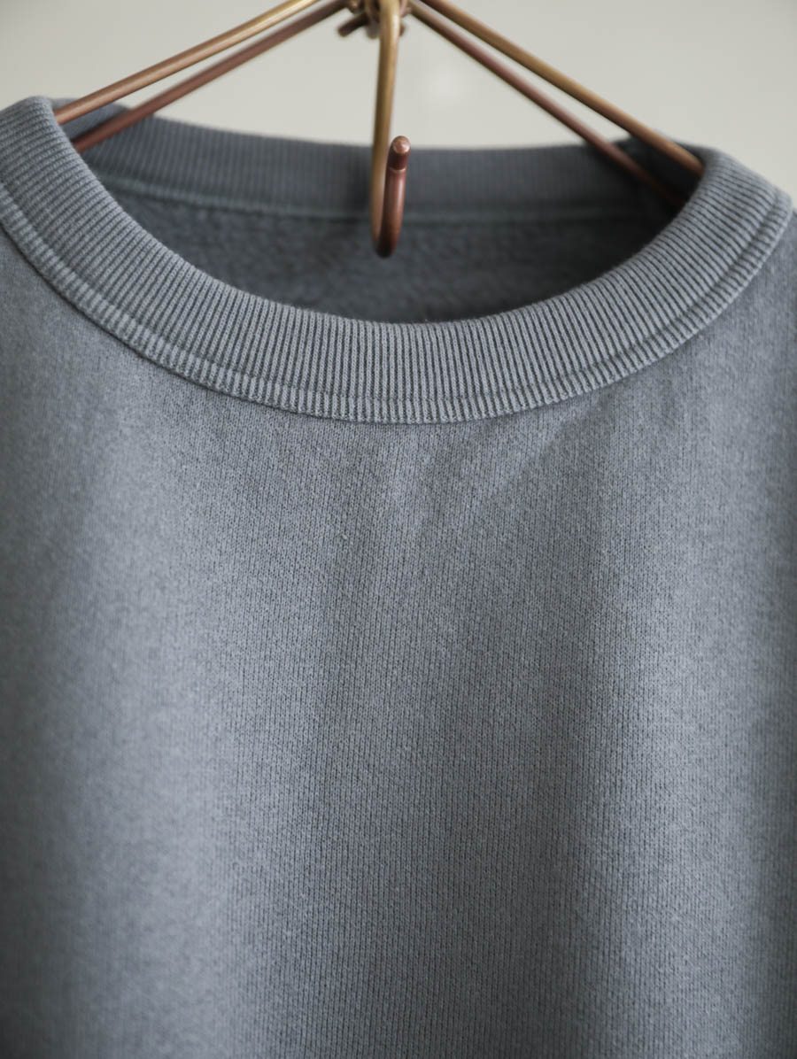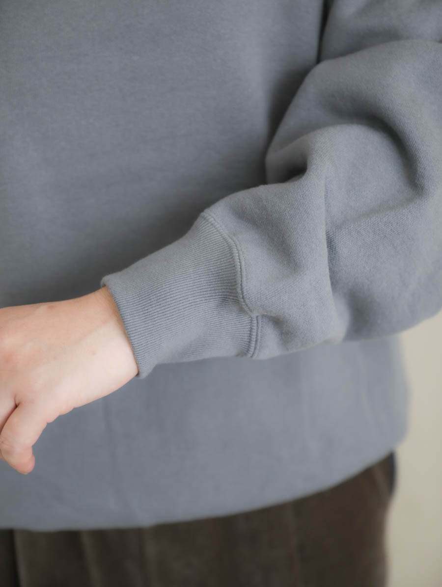 吊り編み機でしっかりと度詰めに編まれた裏起毛スウェット。柔らかくて軽い生地は着用のストレスもなく、裏側はホワッと起毛し心地よい温かみを感じていただけます。袖を通してみると、しっかりと安心感があるのに軽い、これから寒くなる季節に重宝します。