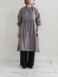 フランダース地方で育てられたベルガモリネンを使用。ほのかな光沢を持った上品な佇まいに仕上がっています。清涼感と柔らかさがあり、着心地は爽やかに肌に優しい素材。また、生地の一部には、1900年代にヨーロッパ各地で使われていたリネンを使用し、時代を感じる趣のある一着となっています。