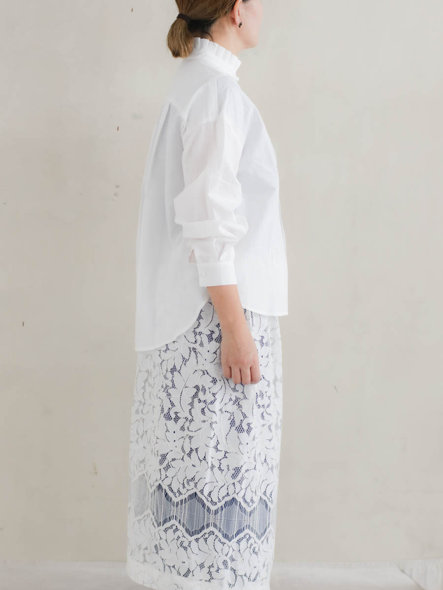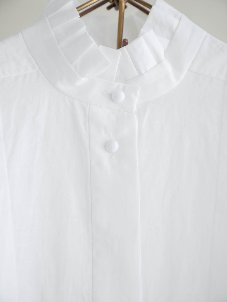 コットンリネンシャンブレーラッフルカラーブラウス(ホワイト)