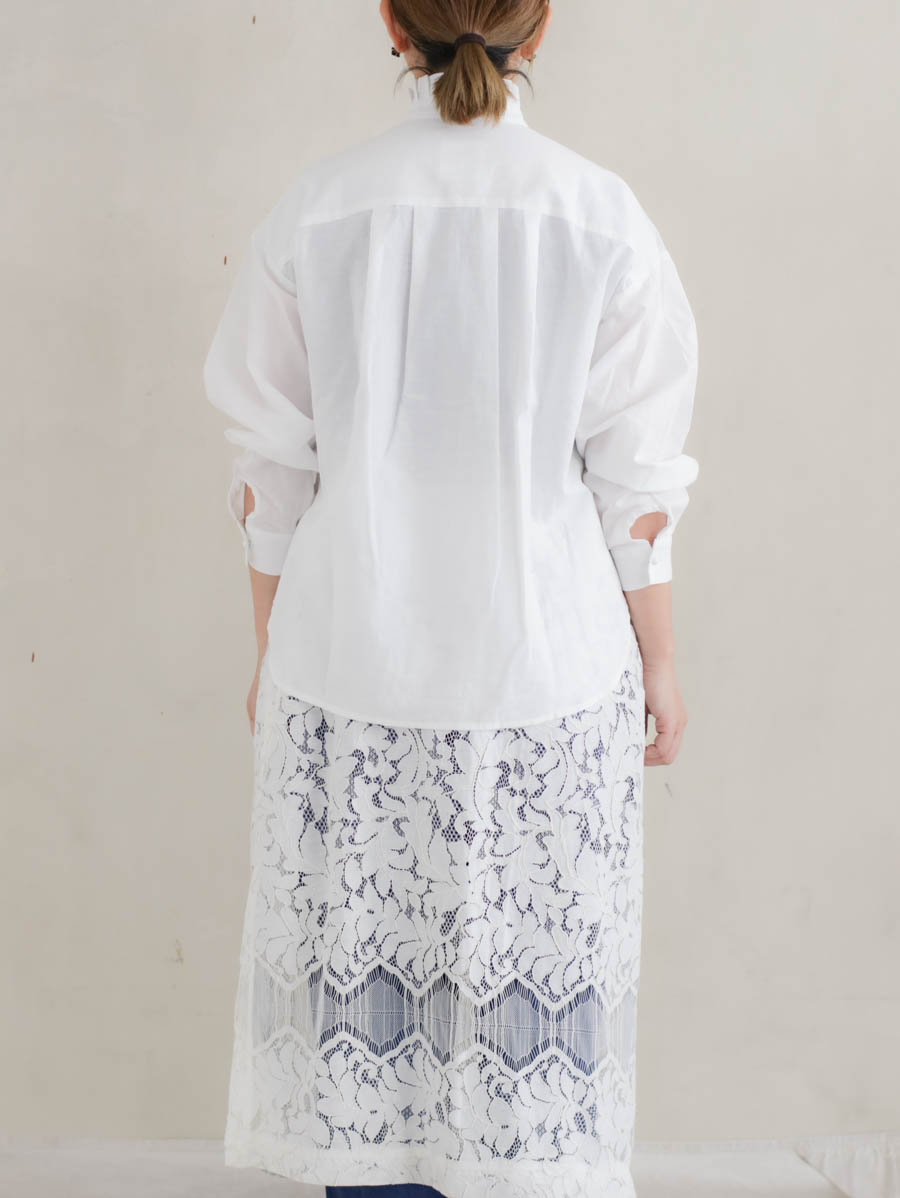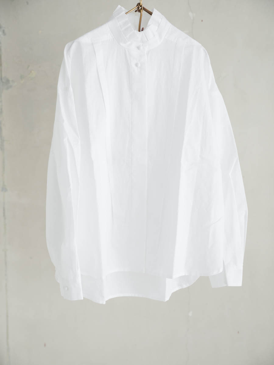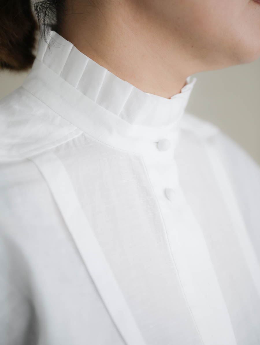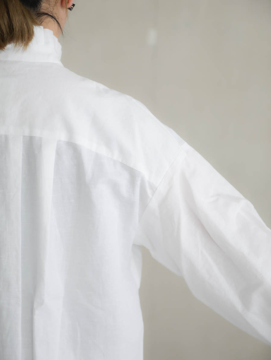 可愛らしくも凛とした表情を持った、佇まいの良い1枚。秋にデニムと合わせてカジュアルに着ていただくのもおすすめです。冬場にはアウターやワンピースから襟をのぞかせて重ね着にお使い頂くのも素敵ですよ。