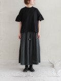 裾にかけて自然に広がるシルエットは、スカートのような軽やかさも感じられる佇まいです。