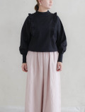 コットン天竺ショルダーフリルカットソー(ブラック)