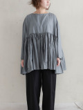 ワイドギャザーブラウス(ディムターコイズ)