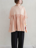 ワイドギャザーショートスリーブブラウス(ピンクベージュ)