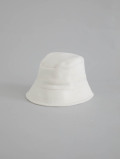 芯の入っていないハットなので、肩肘張らずにかぶれます。つばはコンパクトで、ハットの高さが全身にいいアクセントを加えてくれます。
