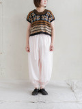 股上を深く、腰回りをゆったりとさせた楽なサイズ感。ワイドなデザインですが、生地の落ち感と裾のゴムにより、ボリュームを楽しみつつもきれいなラインでご着用いただけます。ウエストはゴムとベルトでサイズ調節も可能です。
