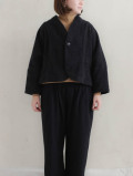 フロントは1つボタンで着やすいので、カーディガンやガウンのように日常的に気軽にお使いいただけますよ。同素材のパンツとのセットアップでスタイルを仕上げていただくのもおすすめです。