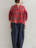 東炊きタータンチェックバンドカラーブラウス(アカ)