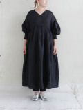 トリプルワッシャーリネンコットンVネックワンピース(クロ)