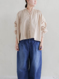 ギャザー使いが女性らしく、首周りのすっきりとしたスタンドカラーブラウスです。