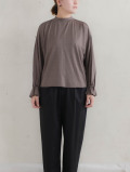 ウォッシャブルウール天竺ギャザースリーブプルオーバー(モカ)