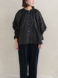 ナチュラルタイプライターギャザーパフブラウス(クロ)