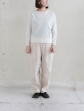 程よい厚みがありながらも、洗いで柔らかく馴染んだリネンコットン。 素朴でナチュラルな質感が着やすく、膨らみのある心地よい履き心地。着れる季節も長いリネンなので、ウールやニットとの相性もいいです。