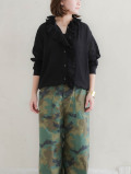 薄手でほんのり透け感のある、キュプラコットンのボイル素材。製品染めを施すことで生地がほどよく縮み、表面には細かなシボが生まれています。ほわっと肌離れのよいドライタッチで、軽やかに心地よくご着用いただけます。