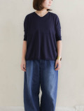 緩やかなVネックでが顔周りをすっきりと見せてくれる、ゆったりときれいに着れるニットです。