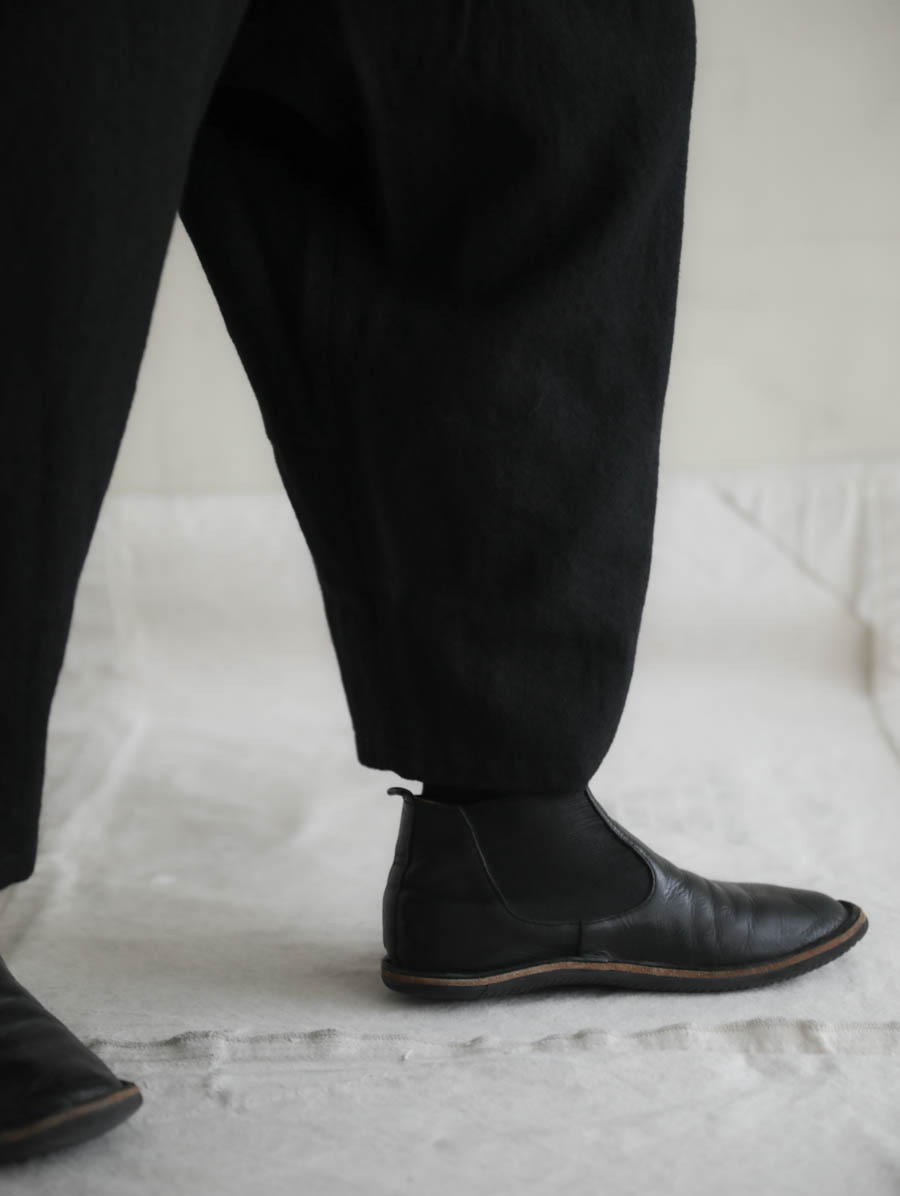 ふっくらとしていて履きやすい厚みの圧縮ウール素材。チクチク感が少なく保温性があり、風を通すこともなく、寒い日にも快適に着ていただけます。