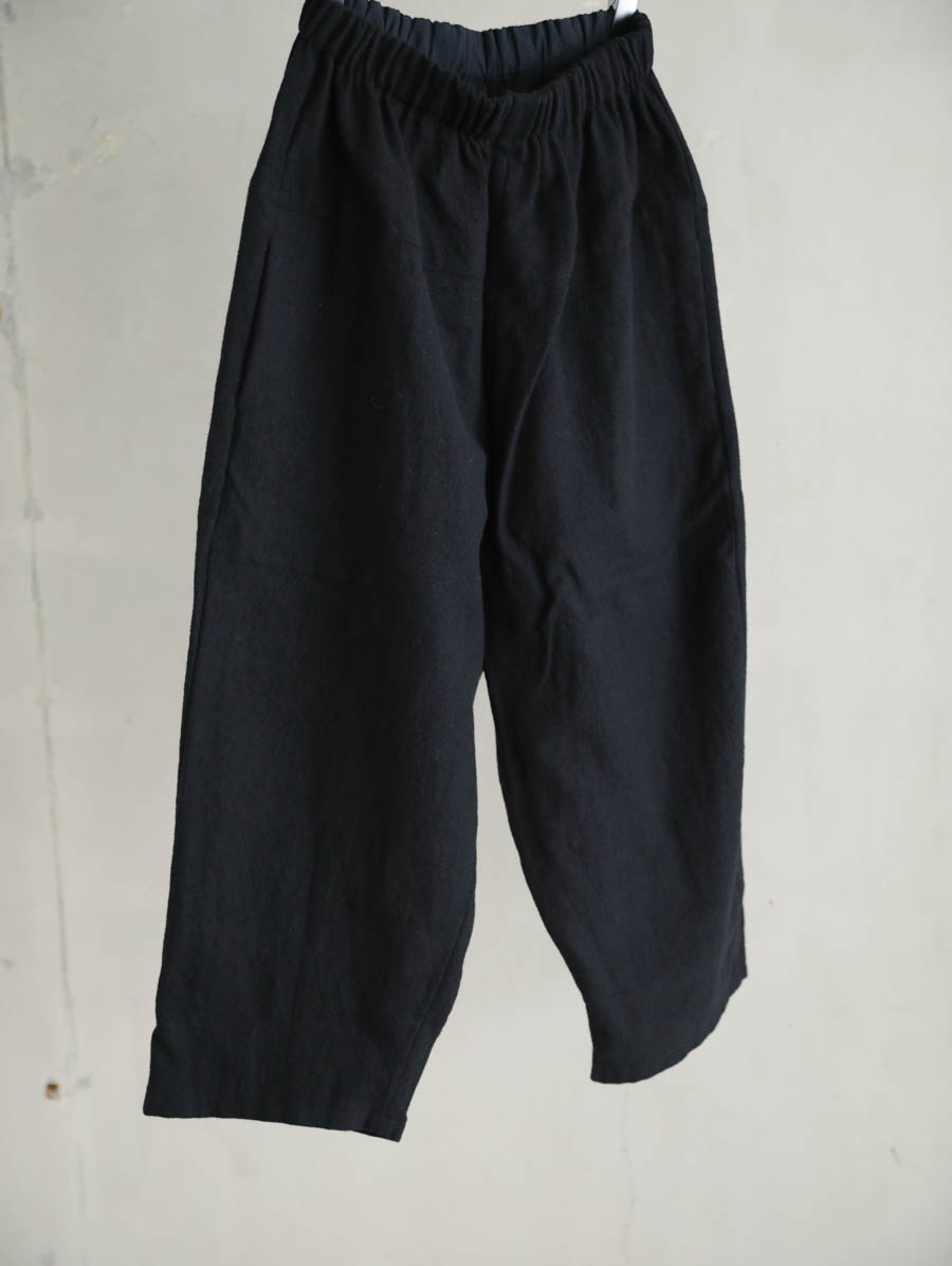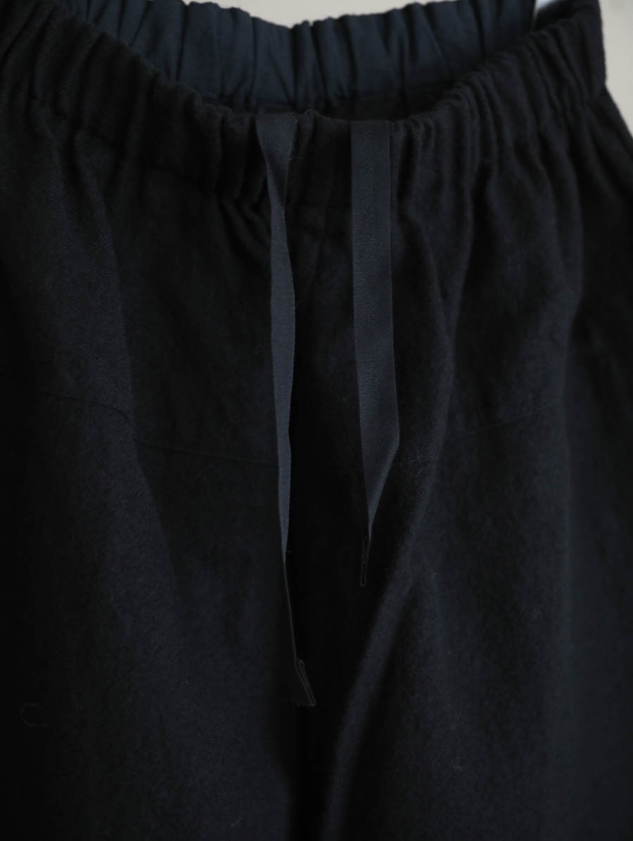 ゆるっとしたシルエットが魅力的な、圧縮ウール素材のイージーパンツです。