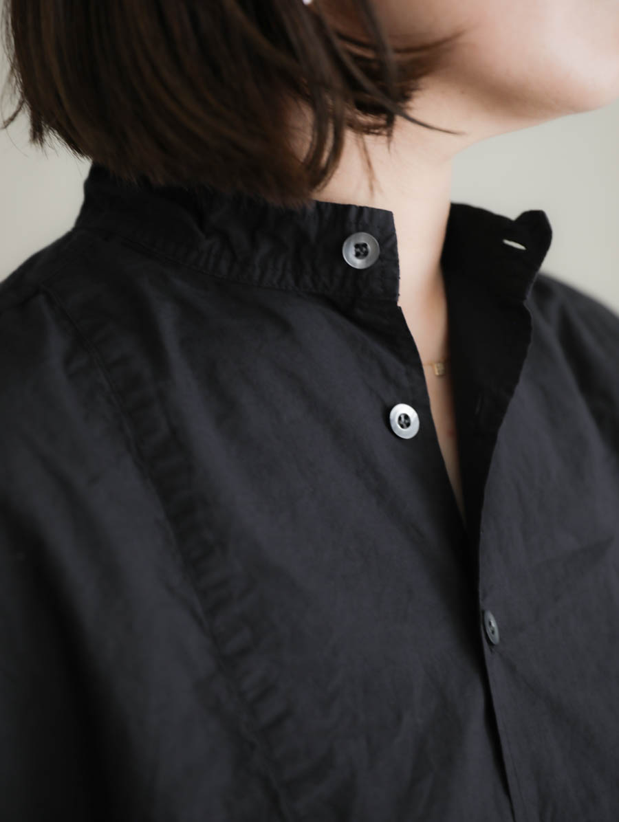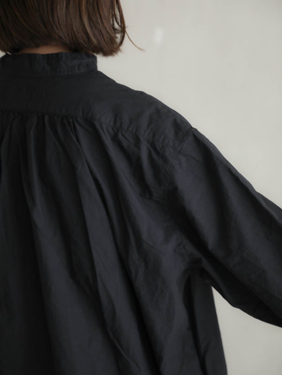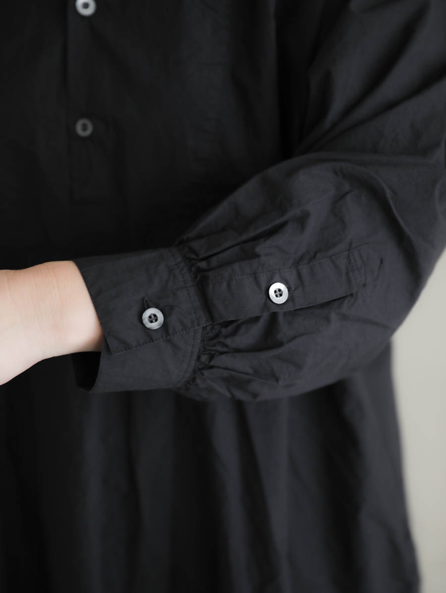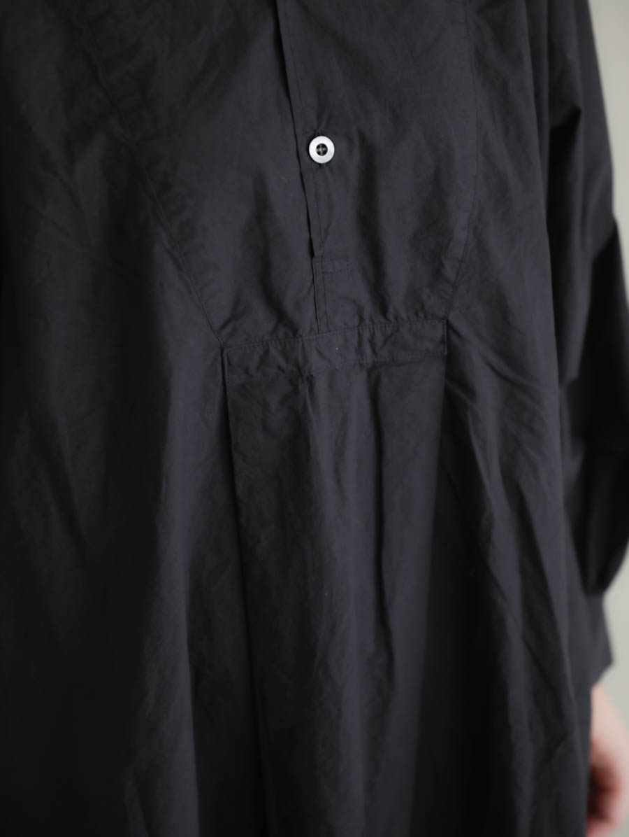 フロントの胸当てや、後ろヨークの仕様など、ヴィンテージのドレスシャツのような雰囲気の良いディテール。ガバっと被って気楽に品よくお過ごしいただけます。