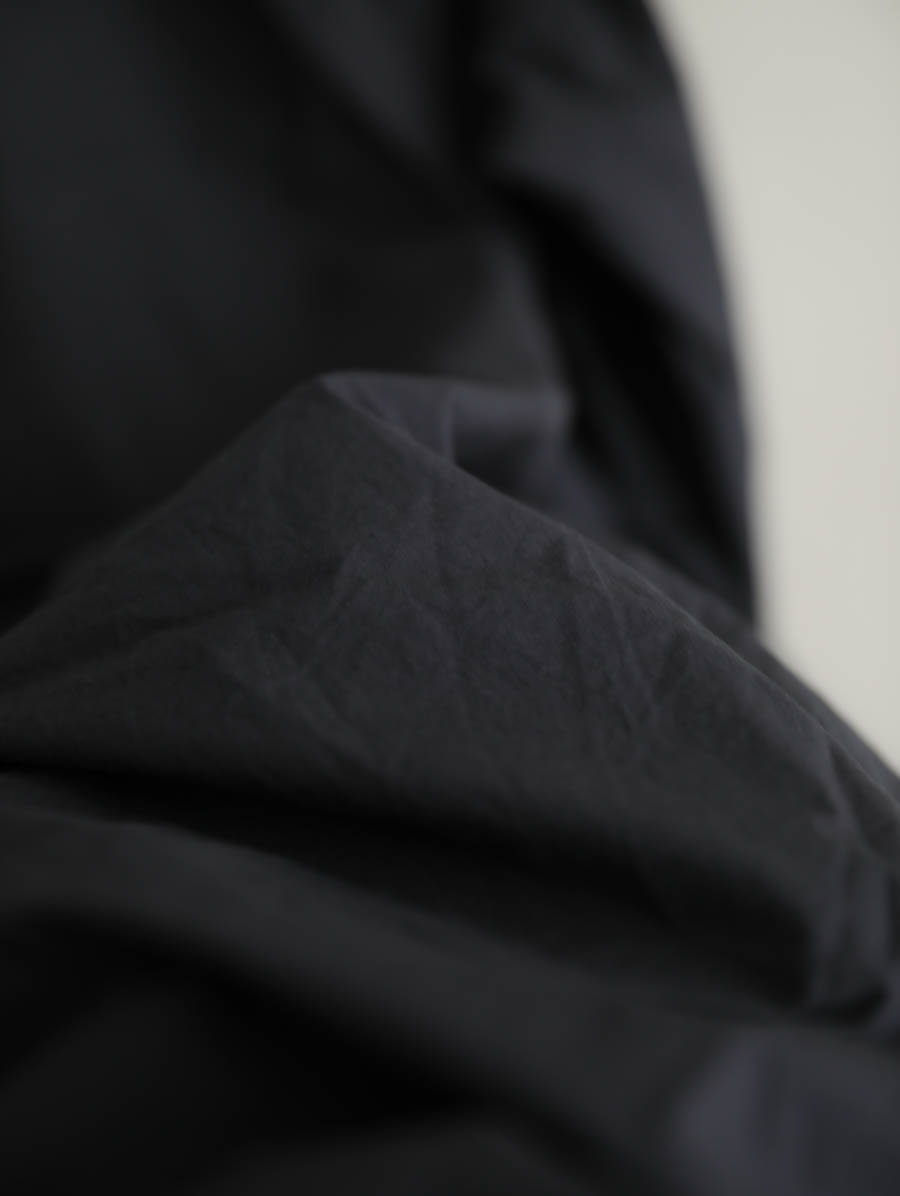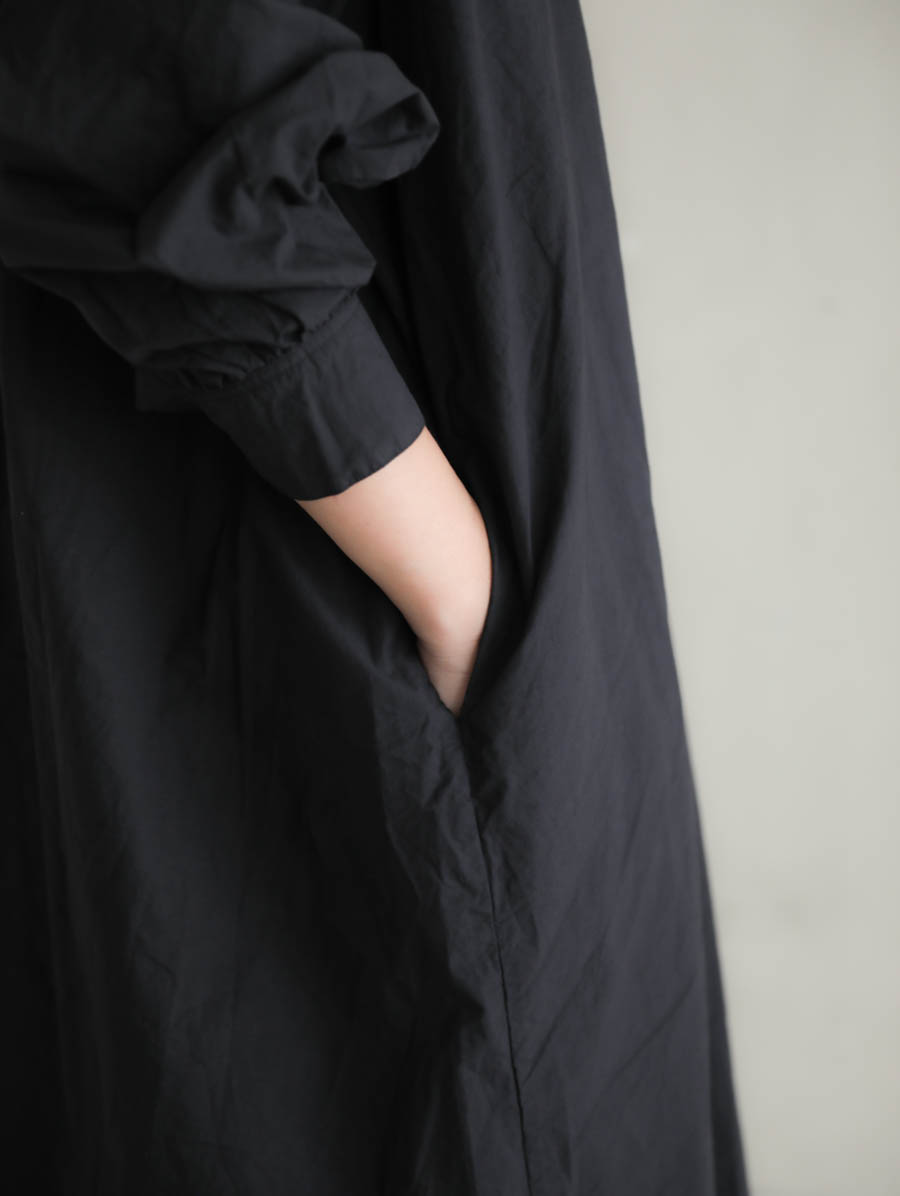高密度に織った生地はワンピースのシルエットを立体的に見せてくれます。肌触りは柔らかくて過ごしやすく、自然な感じで気兼ねなくお使いいただけます。