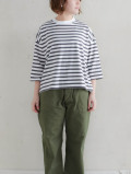 2種類の綿糸をかけ合わせた、優しい肌触りのコットンボーダー。しなやかで膨らみのある気持ちの良い着心地で、デイリーにお使いいただけます。