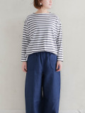 2種類の綿糸をかけ合わせた、優しい肌触りのコットンボーダー。しなやかで膨らみのある気持ちの良い着心地で、デイリーにお使いいただけます。