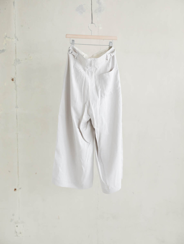 深い股上に裾幅の広いゆったりとしたデザインで、風通り良くリラックスして過ごせるトラウザー。
