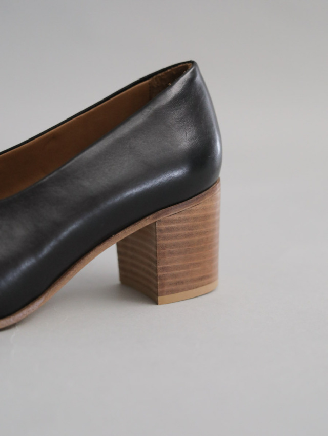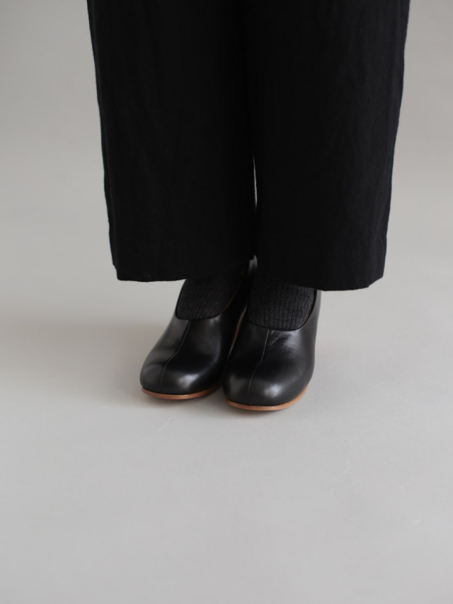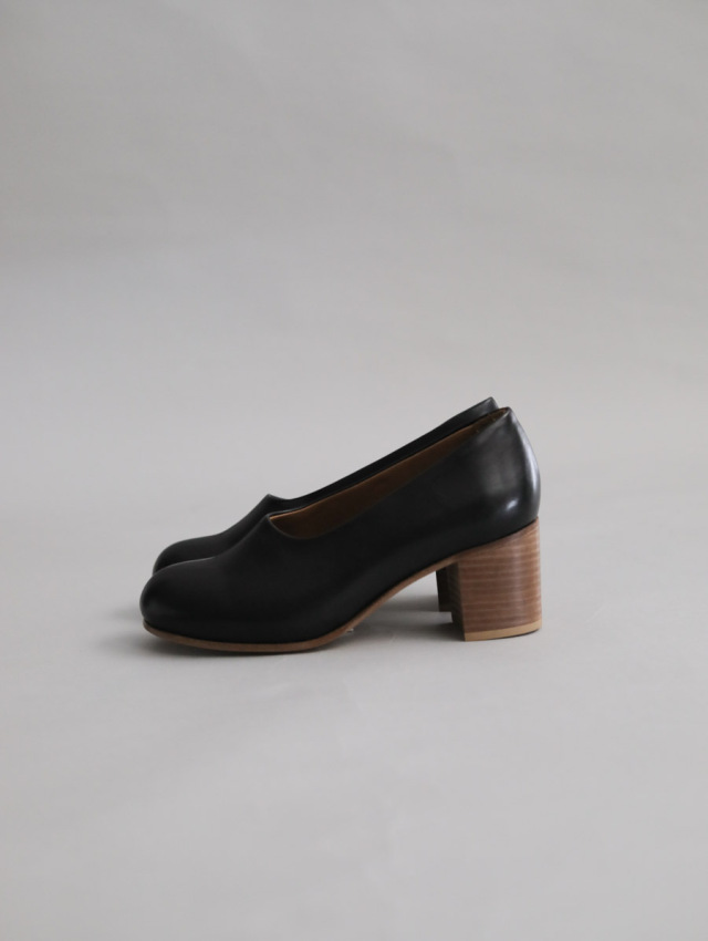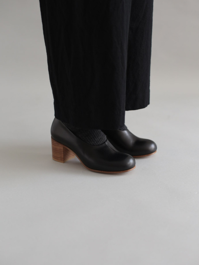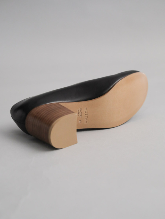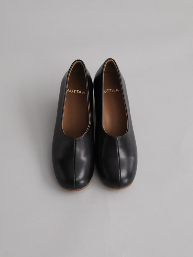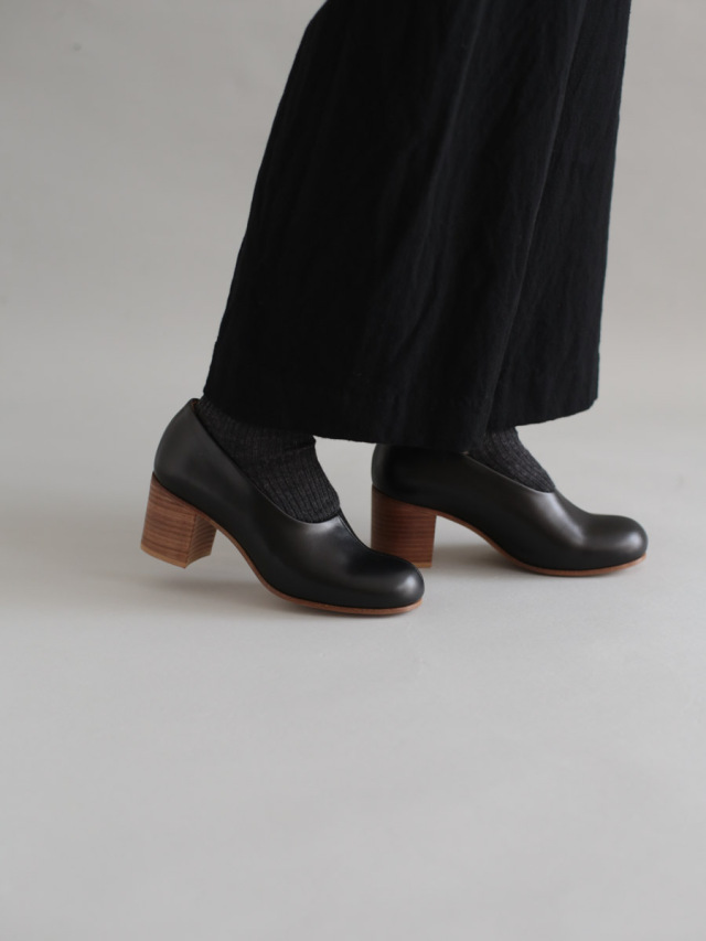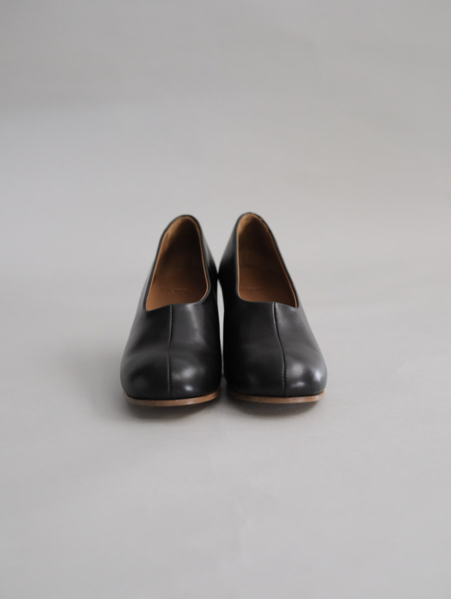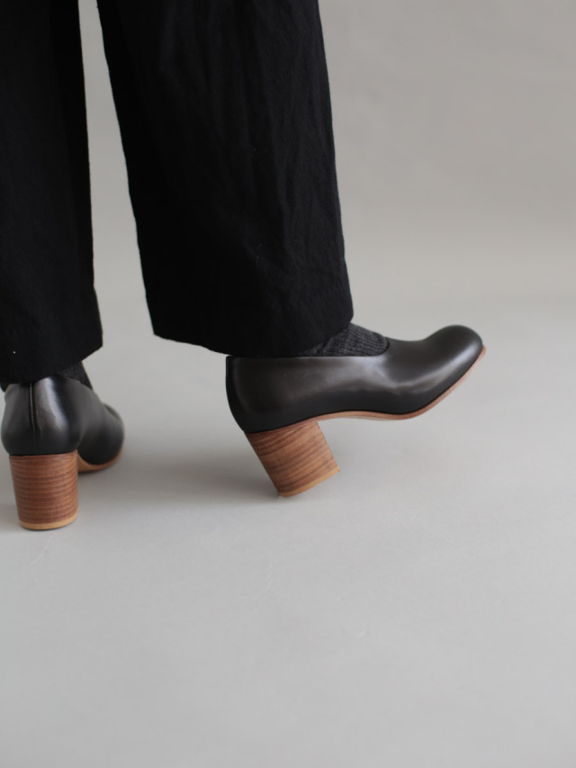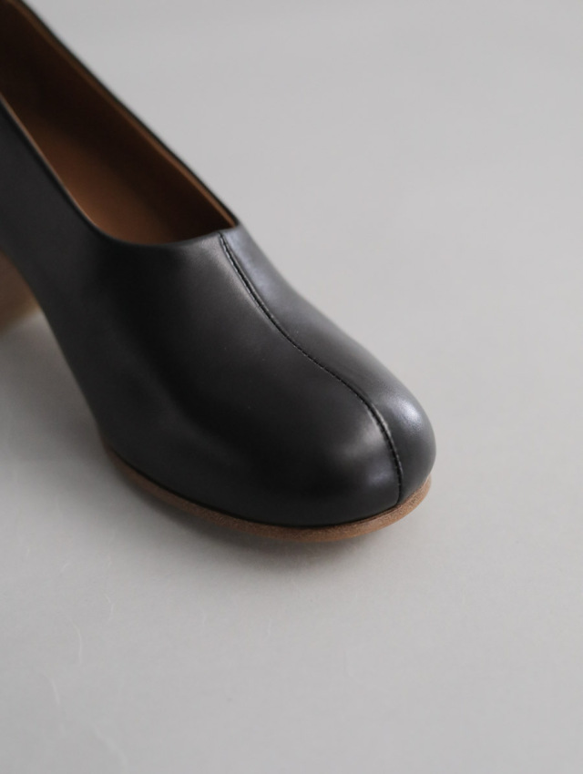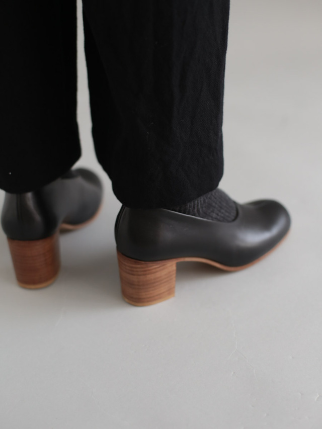 丸みのあるフォルムに、美しいラインが足元を引き締めるレザーヒールパンプス。