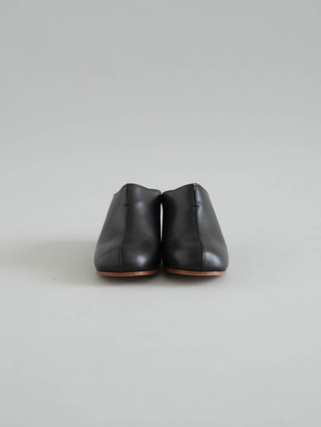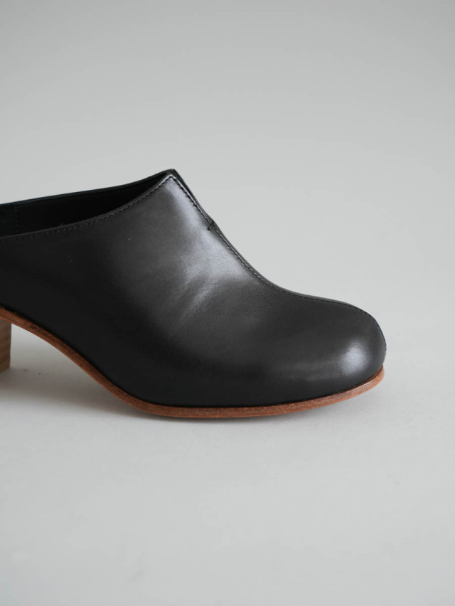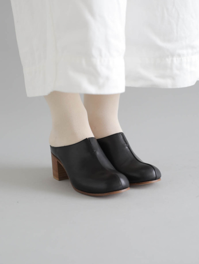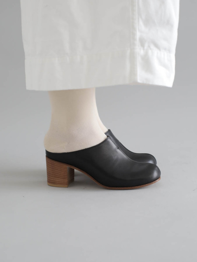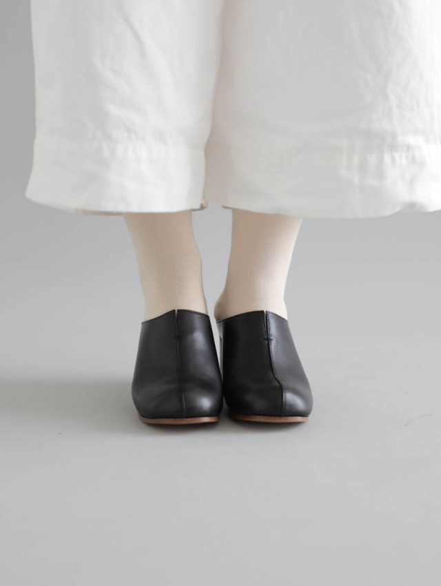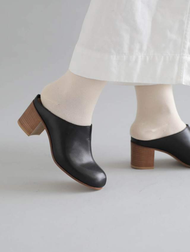 ぽってりと丸みのあるフォルムに、美しいラインが足元を引き締めるヒールタイプのミュールです。