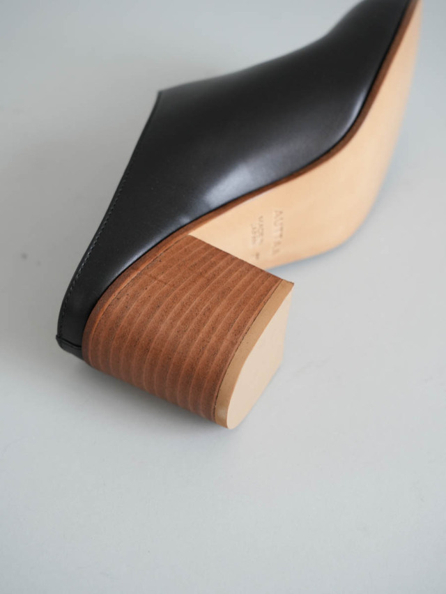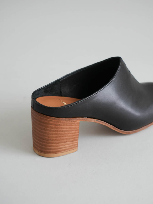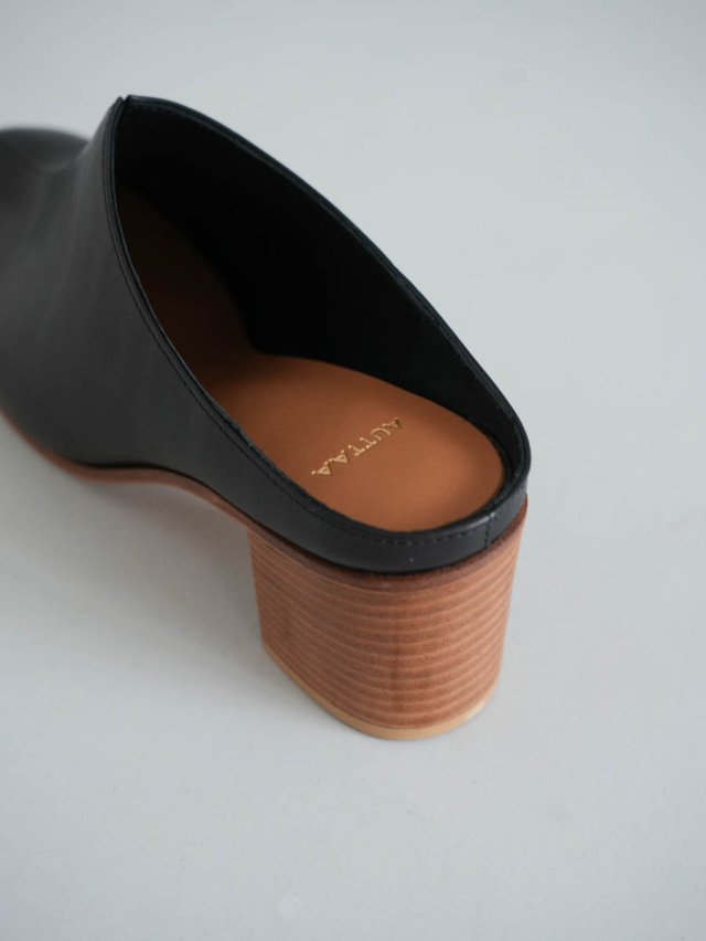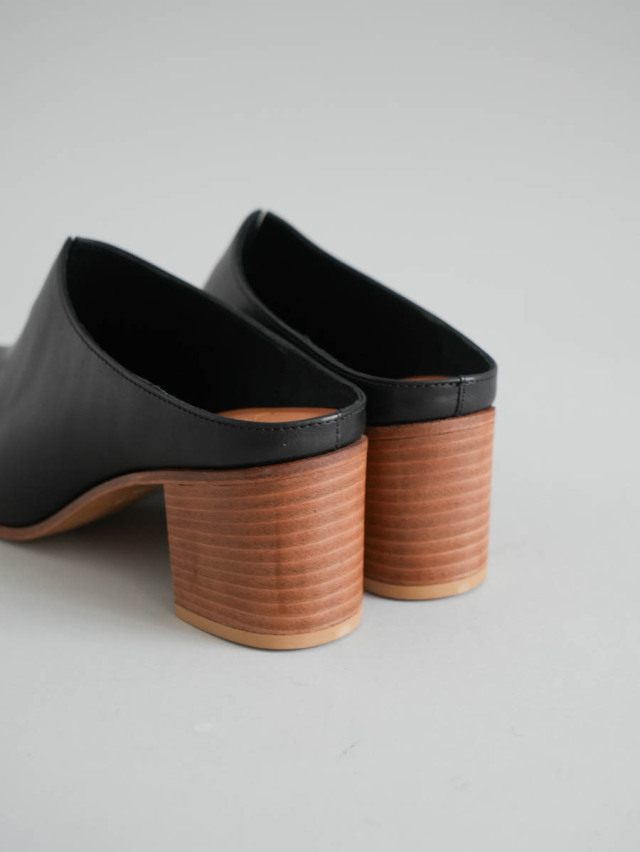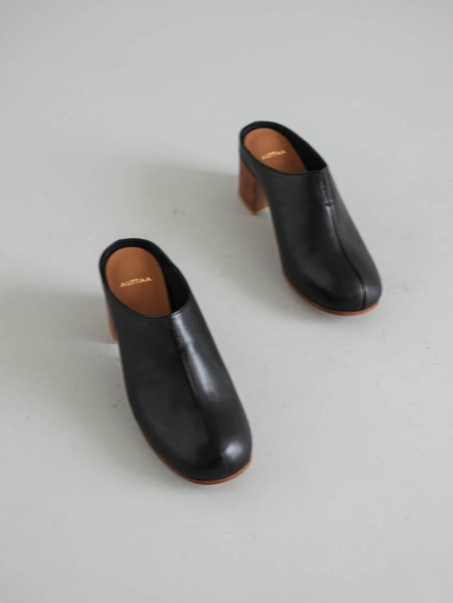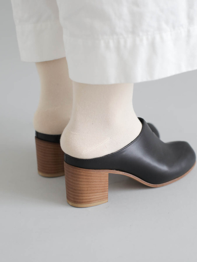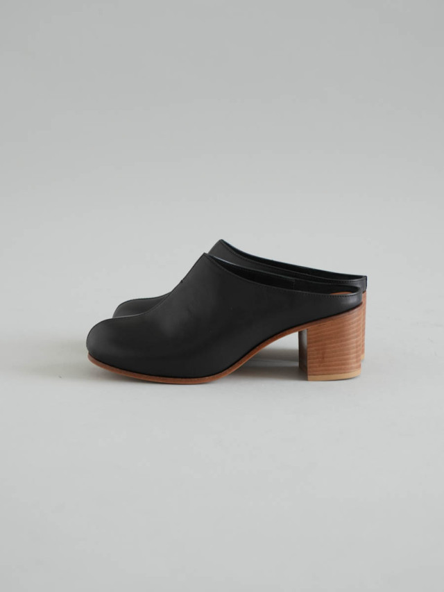 ぽってりと丸みのあるフォルムに、美しいラインが足元を引き締めるヒールタイプのミュールです。