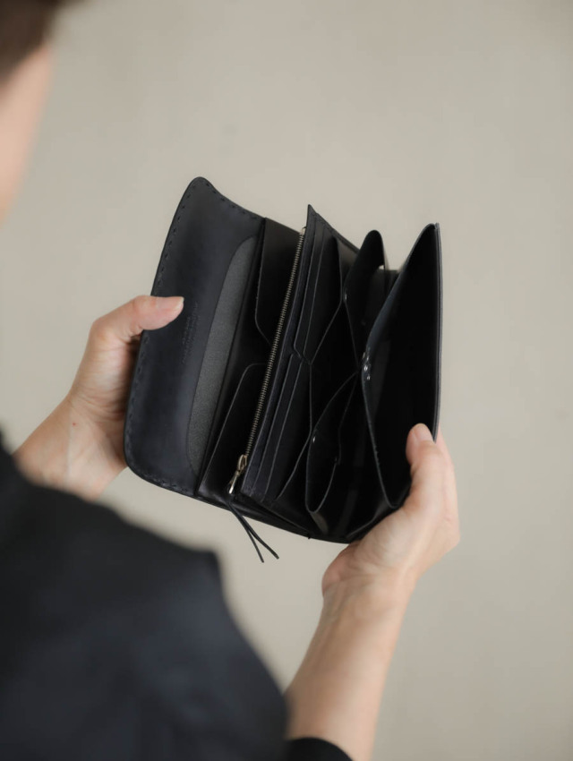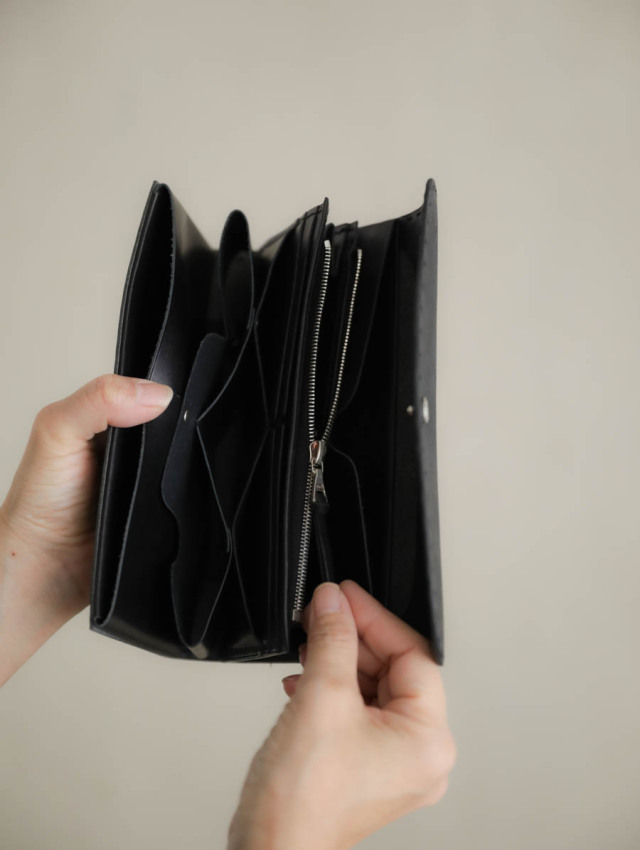 内側は5Wの仕様。開けた時の開き具合もこの財布の魅力の一つで、お札入れ、小銭入れ、カード入れとしっかり収納力もあります。