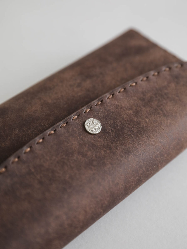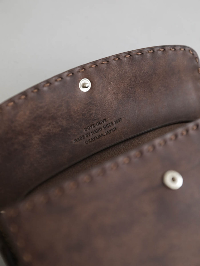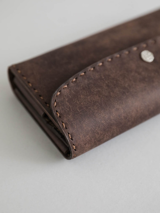 ザラッとした表面が使い込んでいく程に艶が出て、風合いを増していきます。手縫いならではの風合いと丁寧な手しごとをどうぞお楽しみ下さいませ。