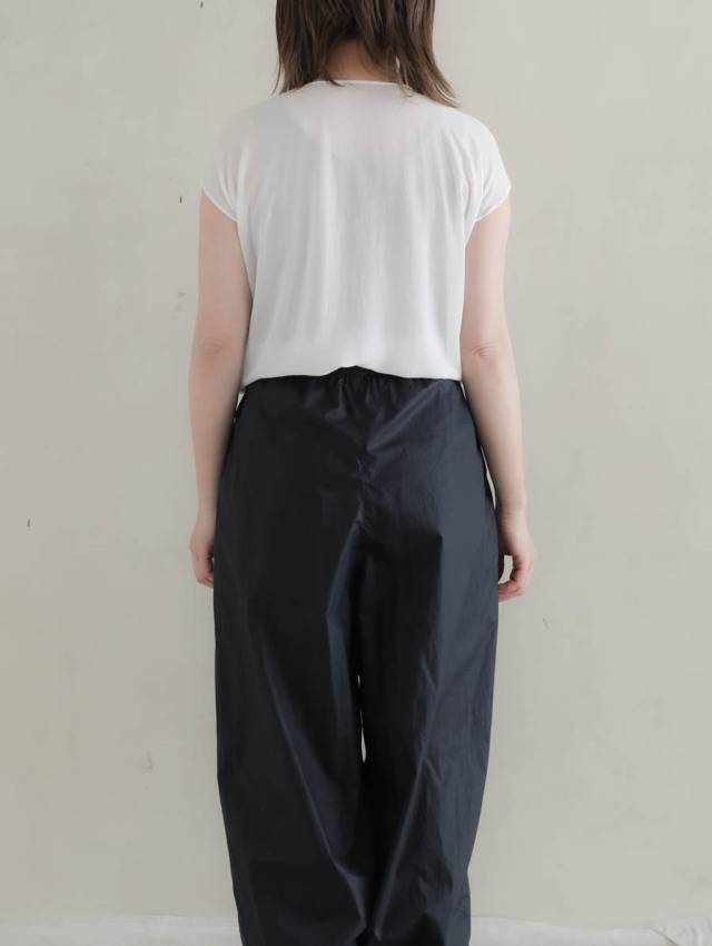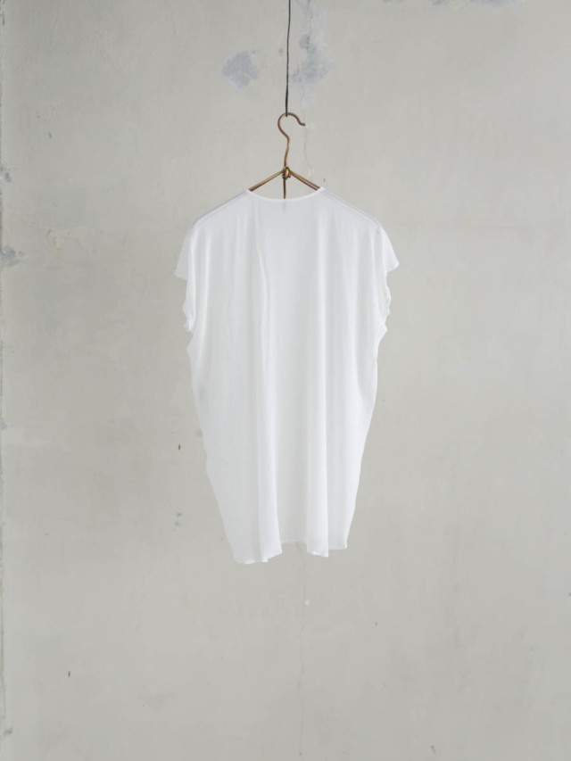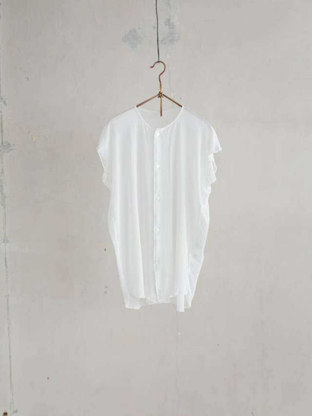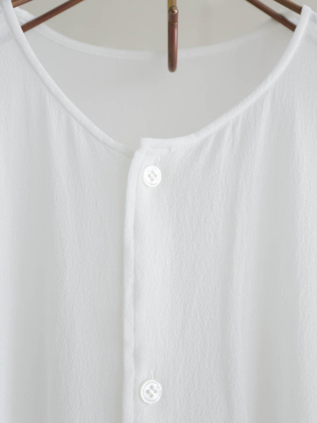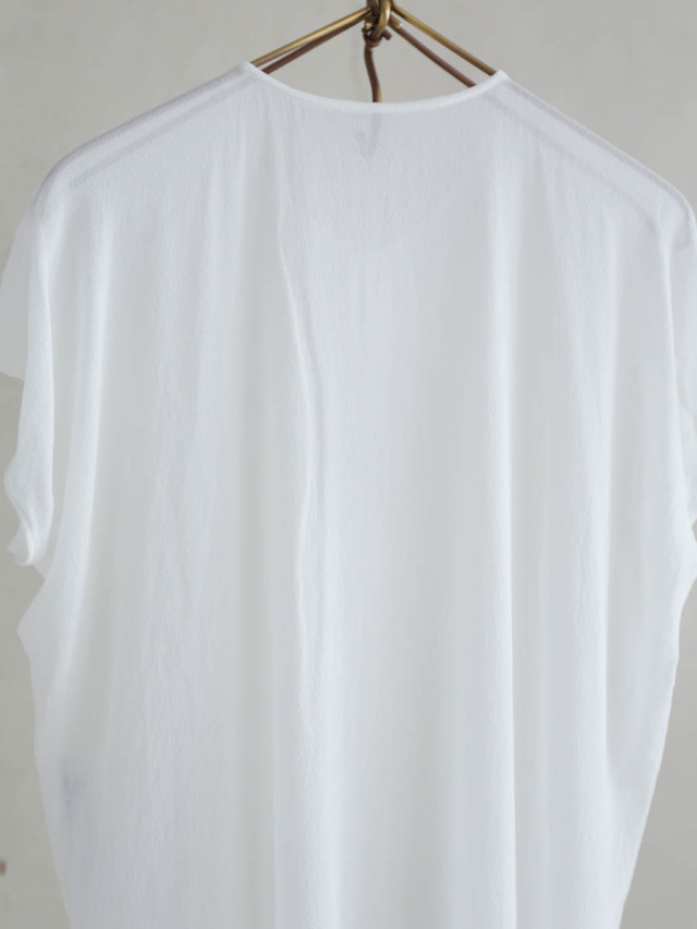 薄手のシルクシフォン生地を使用。ほのかな透け感があり、ドライタッチな肌触りで涼しく着ていただけます。また、中性洗剤を使ったお家での手洗いも可能です。