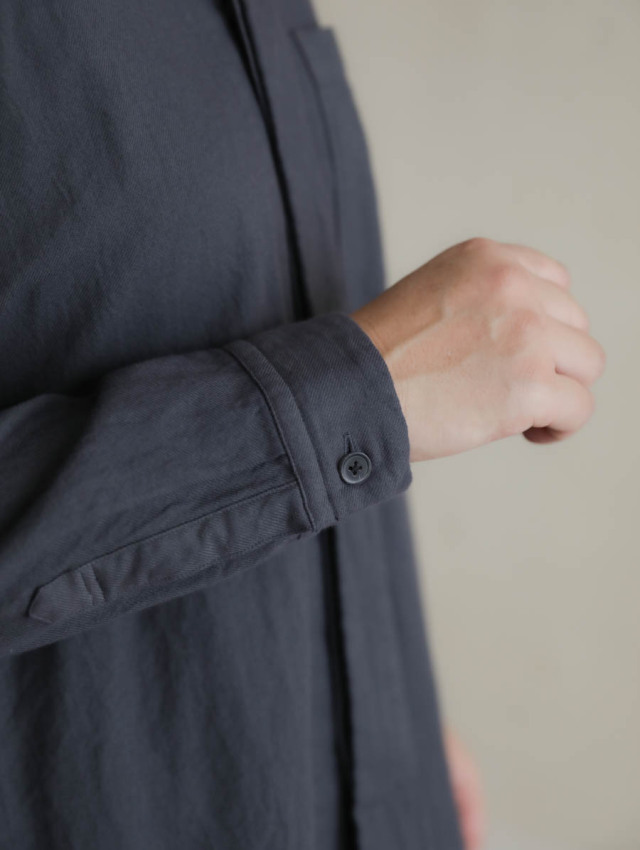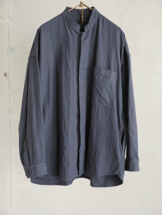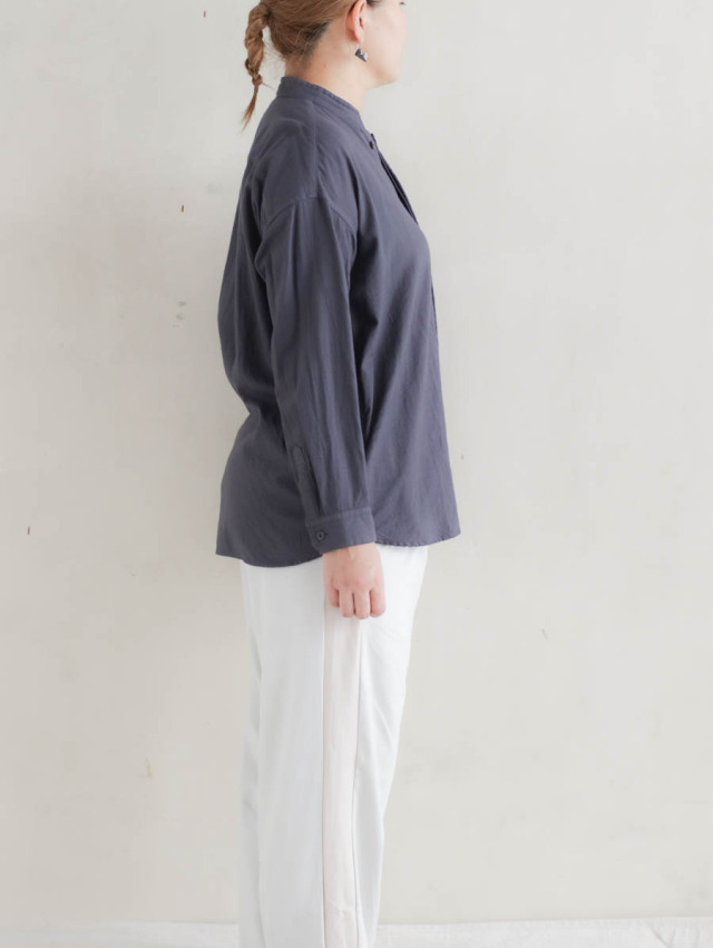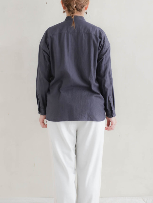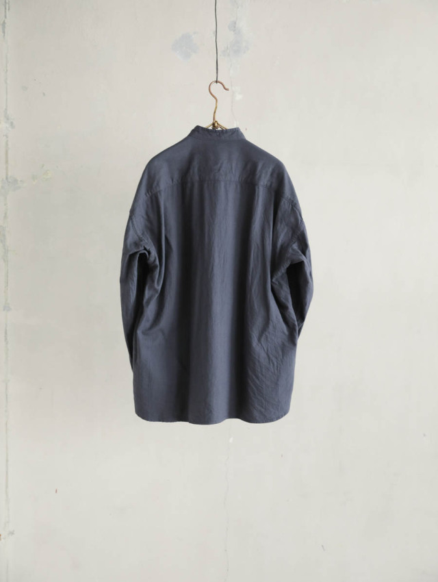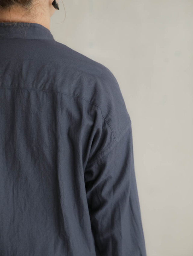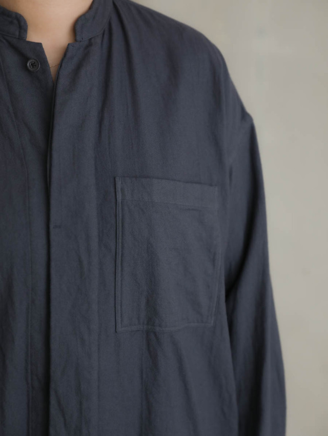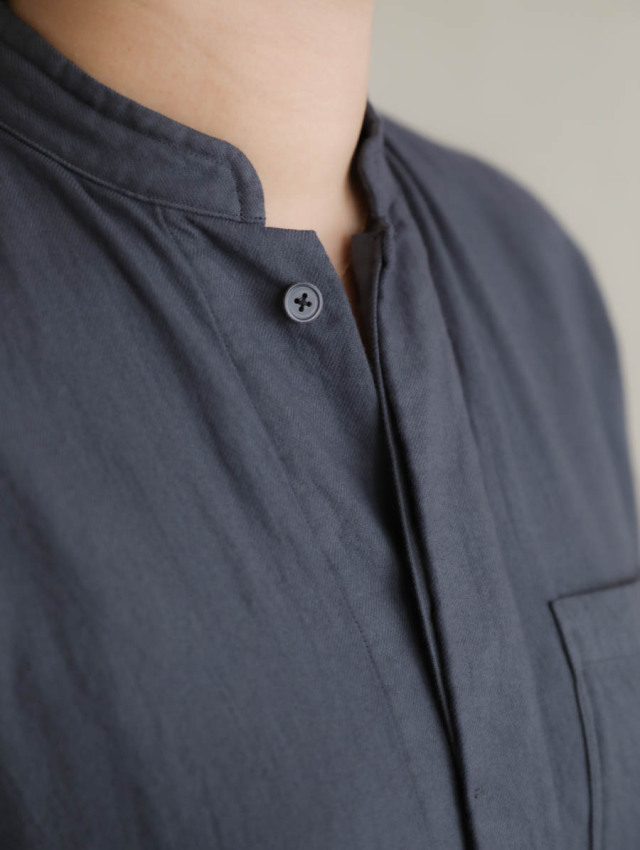20/1オーガニックツイルスタンドカラーシャツ チャコール
