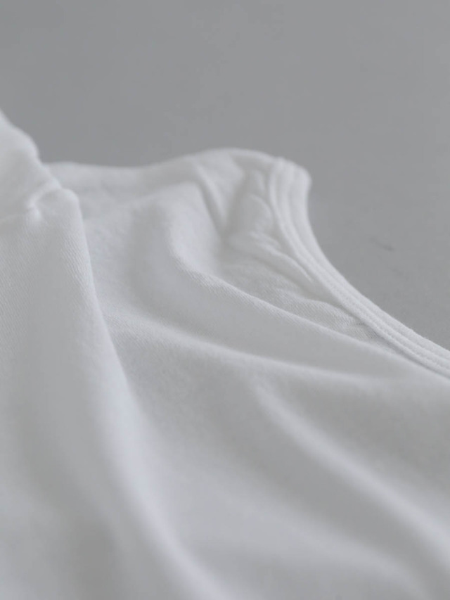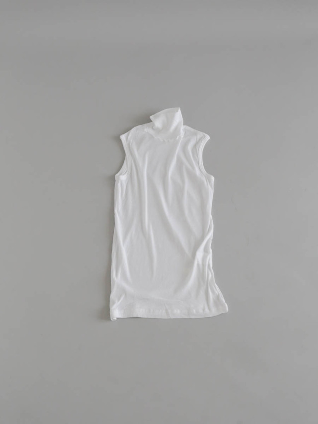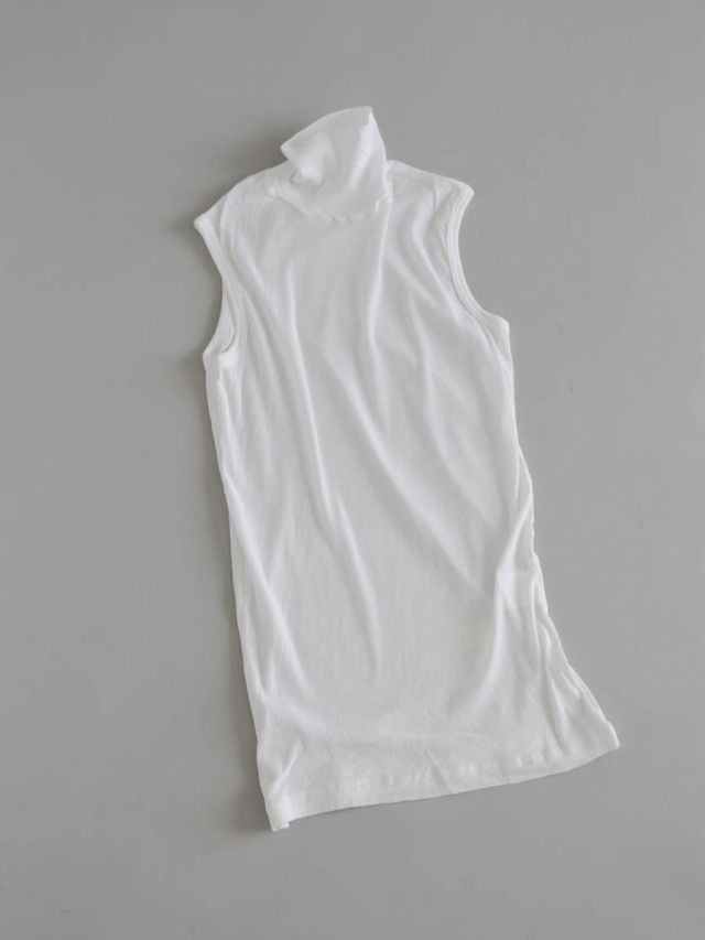 身体に絶妙にフィットするフライス素材のスリーブレス。