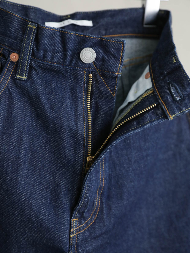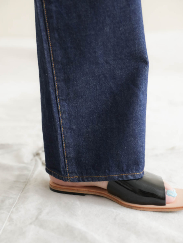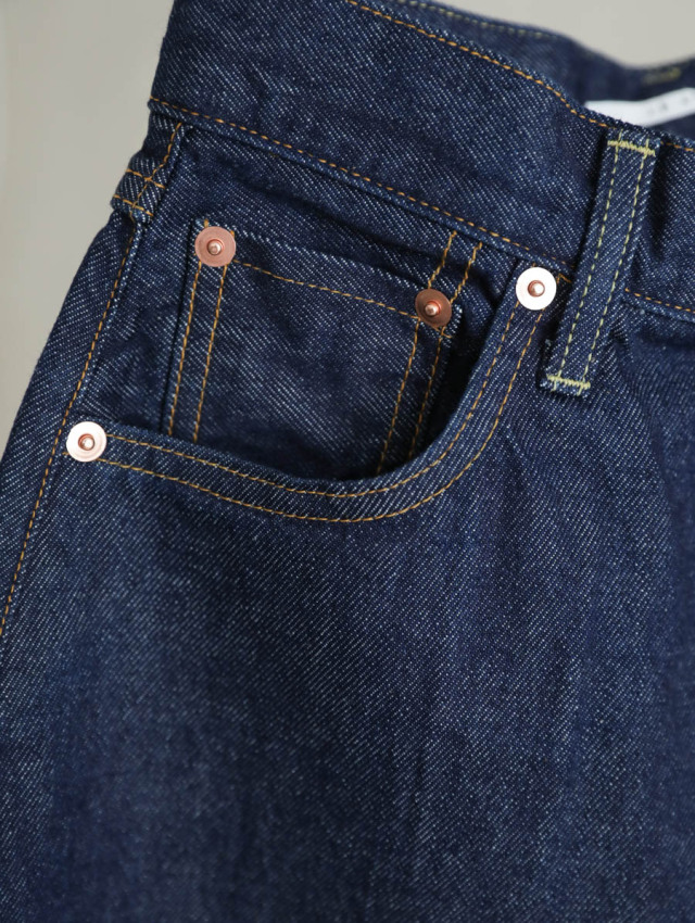 10ozのライトオンスデニムは柔らかく気持ちの良い穿き心地で、丸みのある女性らしいシルエットを作ります。