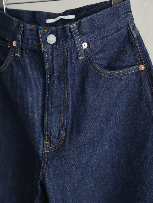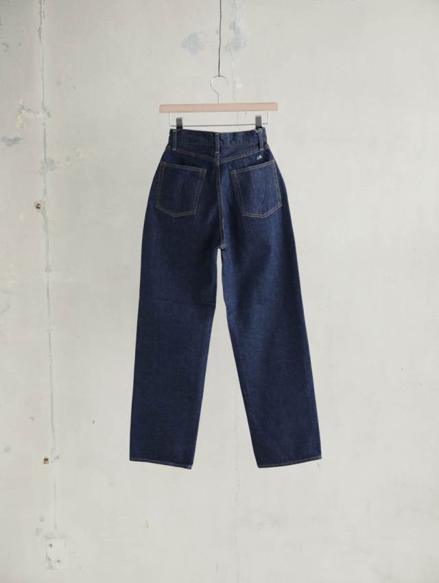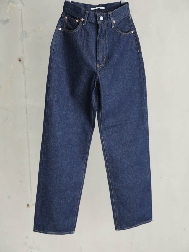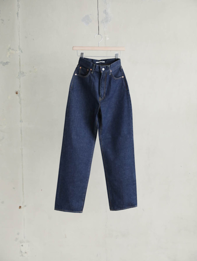 体のラインを拾いすぎないストレートシルエットが穿きやすいハイライズデニムです。