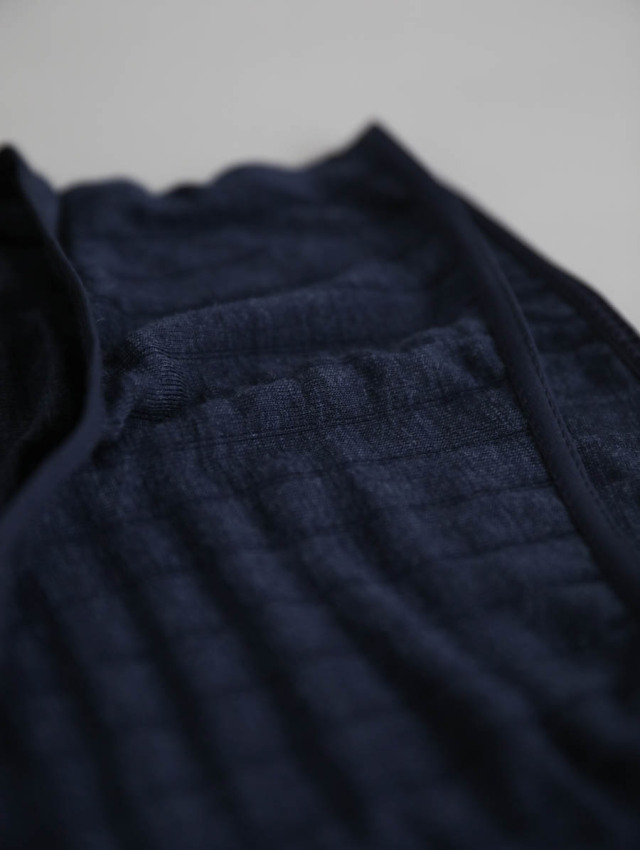 滑らかな肌触りのウールシルク。 メリノウールの中でも最高級の細糸を使用し、チクチク感のない快適な着心地。 季節や体温に合わせて保温性や吸水性を発揮し、常にちょうどいい体温を保つので、冬は暖かく夏は涼しく過ごせます。シルクが入ることで、ウール100%のものよりも軽やかです。
