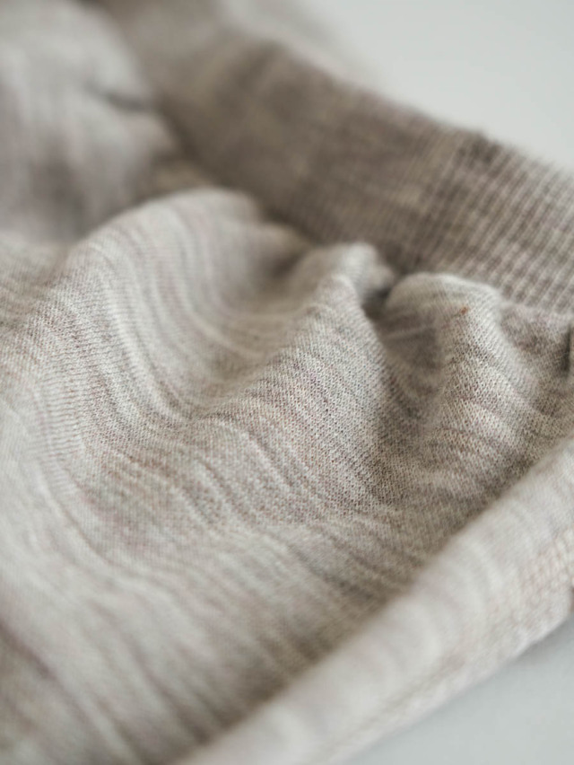 ウエストは総ゴム。裾にもリブが付いたレギンスです。リブもメリノウールを使用しており、緩めのリブなのでフィット感も優しいです。インナーとしてはもちろん、ルームウェアやパジャマとしてもお使いいただけます。