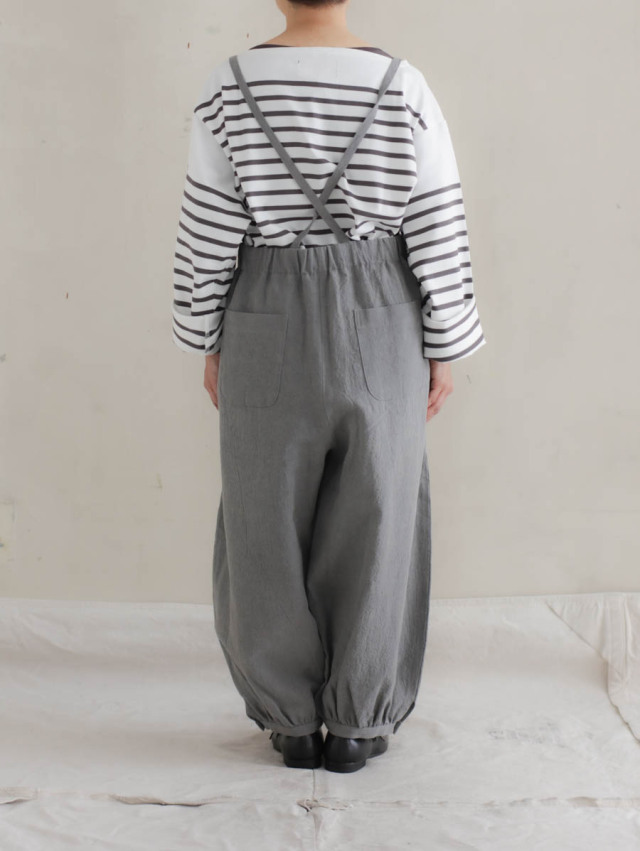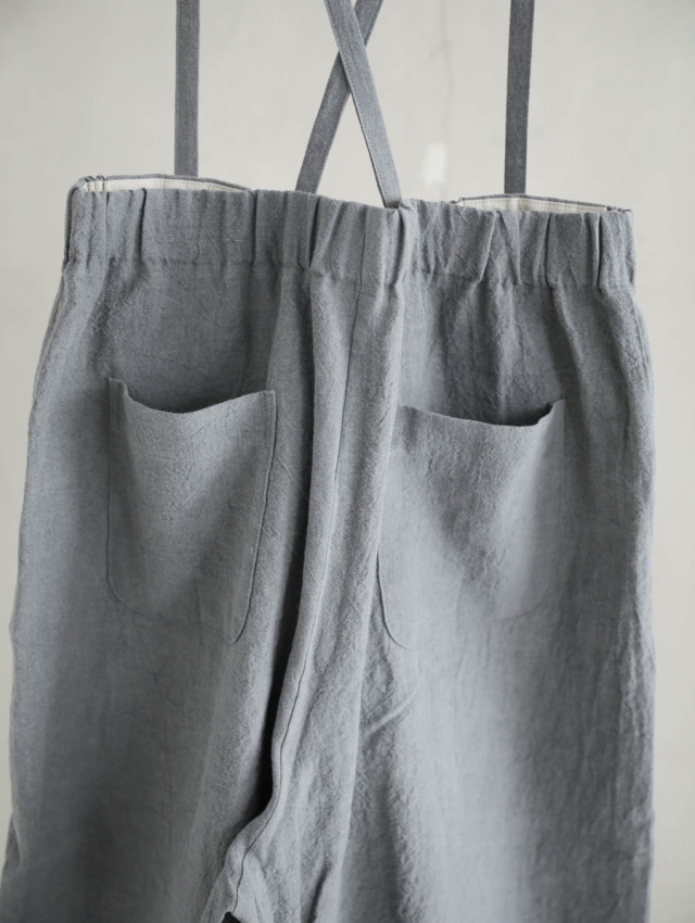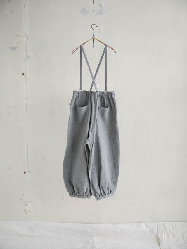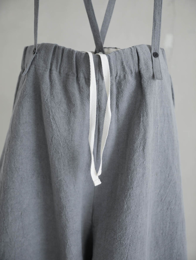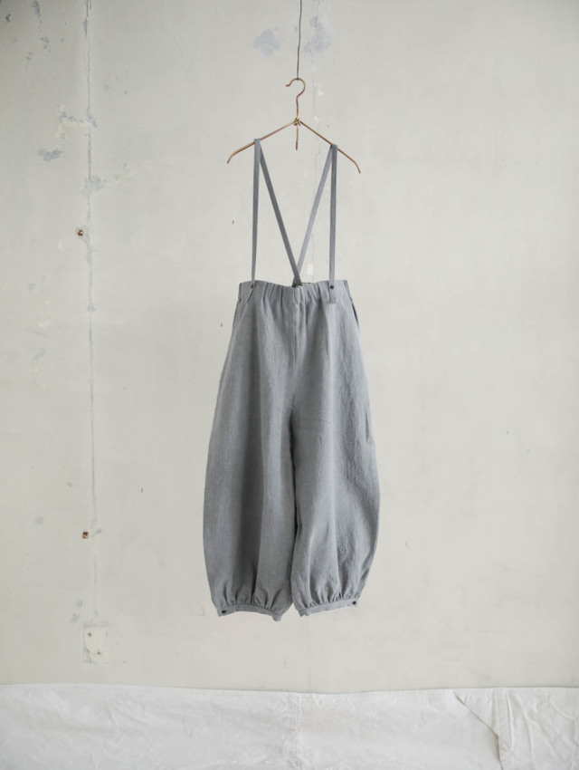 炭染めリネンコットンサスペンダーバルーンパンツ グレー