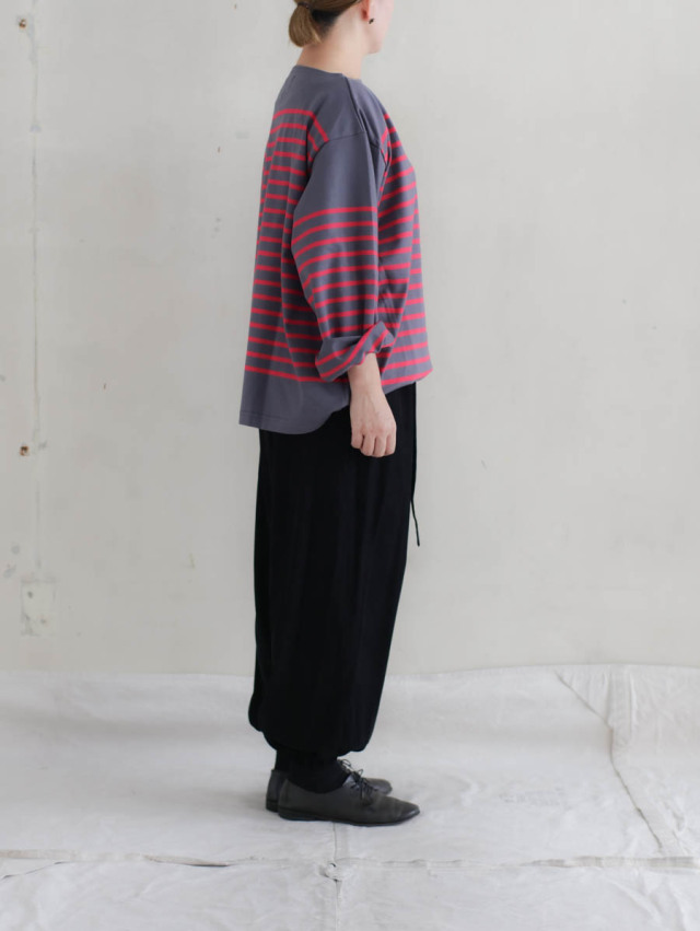 身幅、アームホール、お袖と全体的に大きめな作りで、お袖をくるくると折って着るようなイメージ。