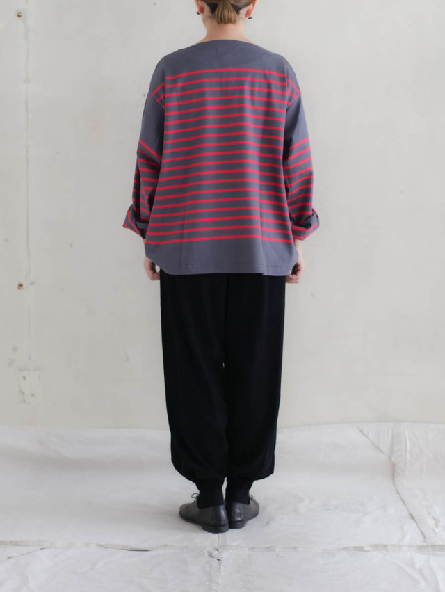 フランス国内の縫製工場にて生産されたカットソー。さらりと肌触り良く、柔らかな着心地です。丈夫さもあり安心してお洗濯していただけます。春夏の生地よりは地厚になります。