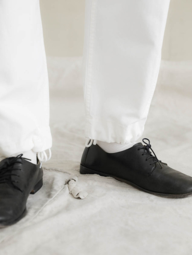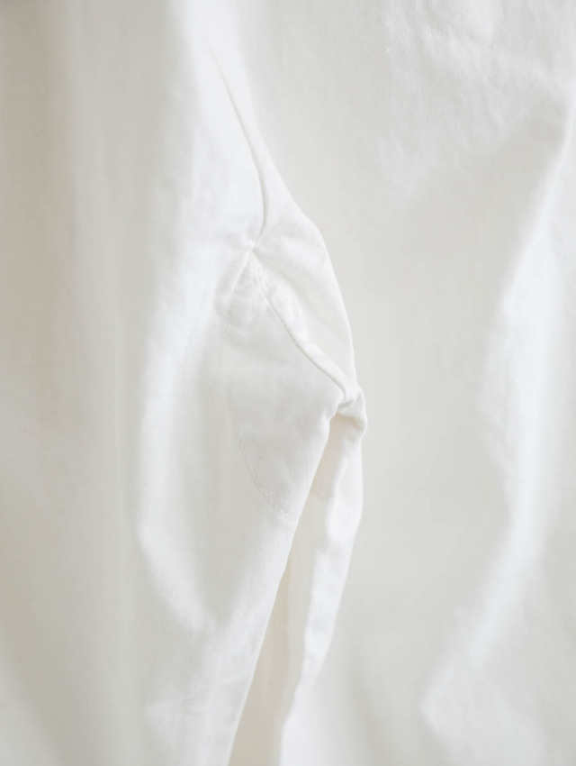 軍パンらしいガシッとした質感の高密度コットンヘンプ。 素材をそのまま生かした色味のエクリュは、柔らかさと品のある色合いです。穿き心地はさらりと心地よく、1年を通してしっかりと活躍してくれます。