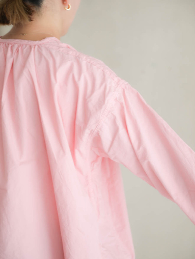 衿ぐりや背中にたっぷりとギャザーが施され、全体的にゆとりのある楽な着心地です。