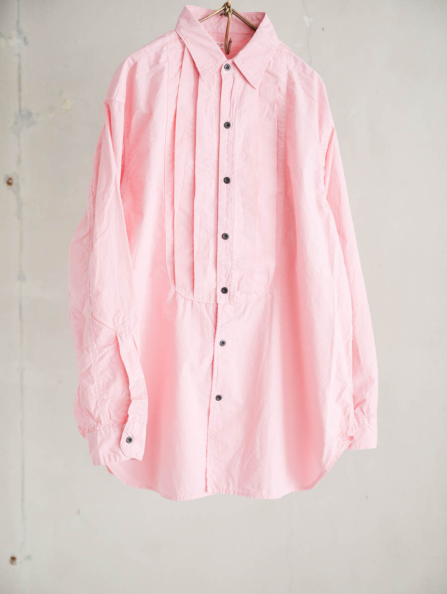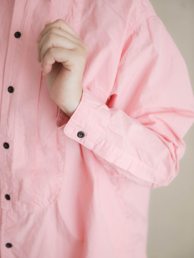 1920年代の2枚のドレスシャツをベースに出来上がったデザインは、アメリカとフランスどちらの要素も取り入れています。フロントヨークに施されたタックと形の良い衿が表情を引き締めます。